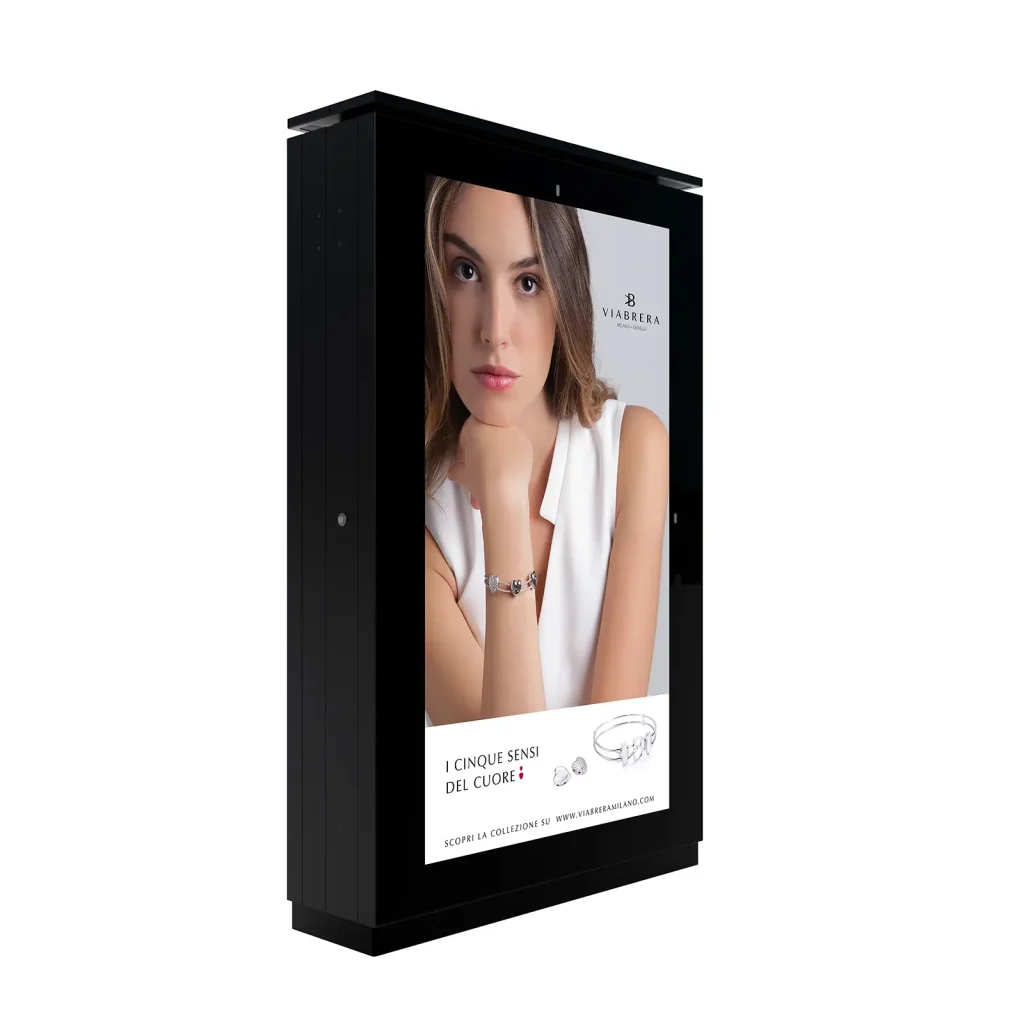 Novità assoluta è EMS, un display outdoor in formato verticale basato su tecnologia LCD-TFT, ingegnerizzato specificamente per installazioni sotto pensilina. Mantenendo l’impatto visivo del formato 75”, EMS è ottimizzato per contesti come fermate dell’autobus e hub di transito, offrendo una soluzione robusta, compatta e salvaspazio per la comunicazione dinamica in aree ad alto traffico pedonale.